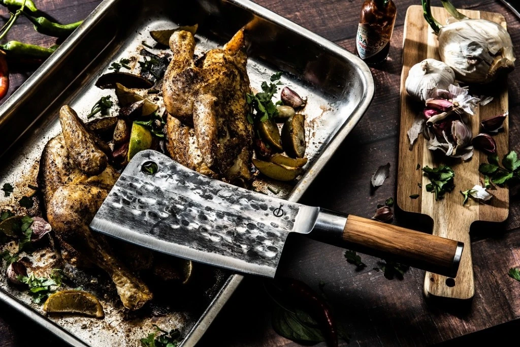 Een hakbijl is gemaakt om botten kapot te slaan. Het is een dik mes dat tegen een stootje kan. Je slaat bijvoorbeeld makkelijk kippenbotten doormidden met dit mes.