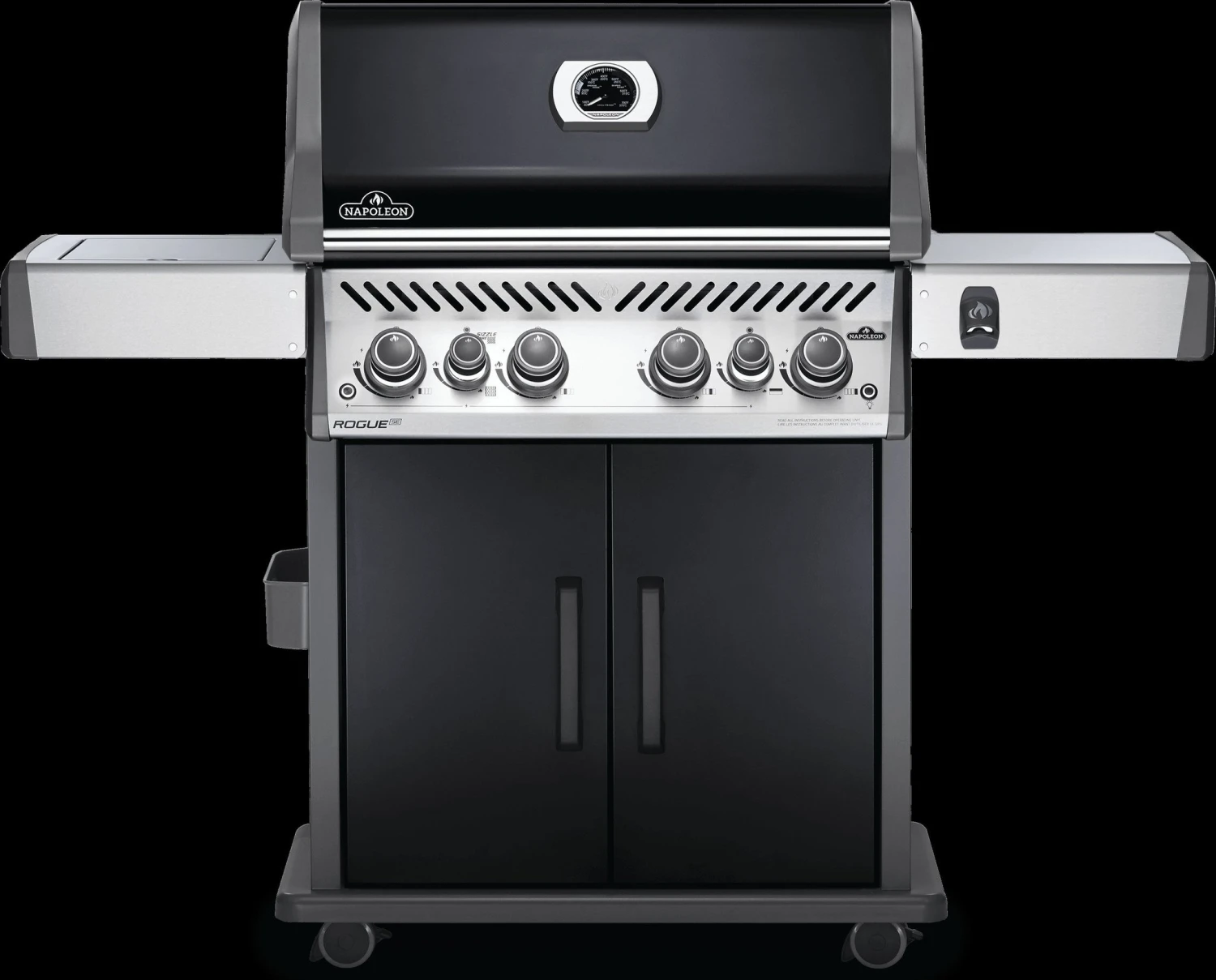 Het topmodel uit de Rogue serie is de nieuwe SE525RSIB-1. Wat direct opvalt aan deze gas grill is dat hij een iets andere afwerking heeft dan de normale R525 modellen. De Napoleon Rogue SE525RSIB-1 is voorzien van verlichte bedieningsknoppen en heeft een bierflesopener op één van de zijbladen. Hij heeft 4 hoofdbranders, een infrarood zijbrander, de zogenoemde SIZZLE ZONE. Hiermee schroei je een stuk vlees snel dicht op extreem hoge temperatuur. Dit model is ook voorzien van een infrarood achterbrander. De deksel is ook iets hoger dan van de standaard R525 modellen, zodat je goed kunt werken met een draaispit. De Rogue SE525RSIB-1 heeft verder alle extra’s die je gewend bent van Napoleon. Zoals 4 zwenkwielen, opbergruimte voor de gasfles en 2 zijbladen, die voldoende ruimte bieden voor bereiding van  gerechten of wegleggen van hete accessoires. De Napoleon Rogue SE525RSIB-1 heeft ook een geïntegreerde thermometer in het deksel, elektrische vonkontsteking (JETFIRE) WAVE-grillroosters voor een perfect grillresultaat.      Â