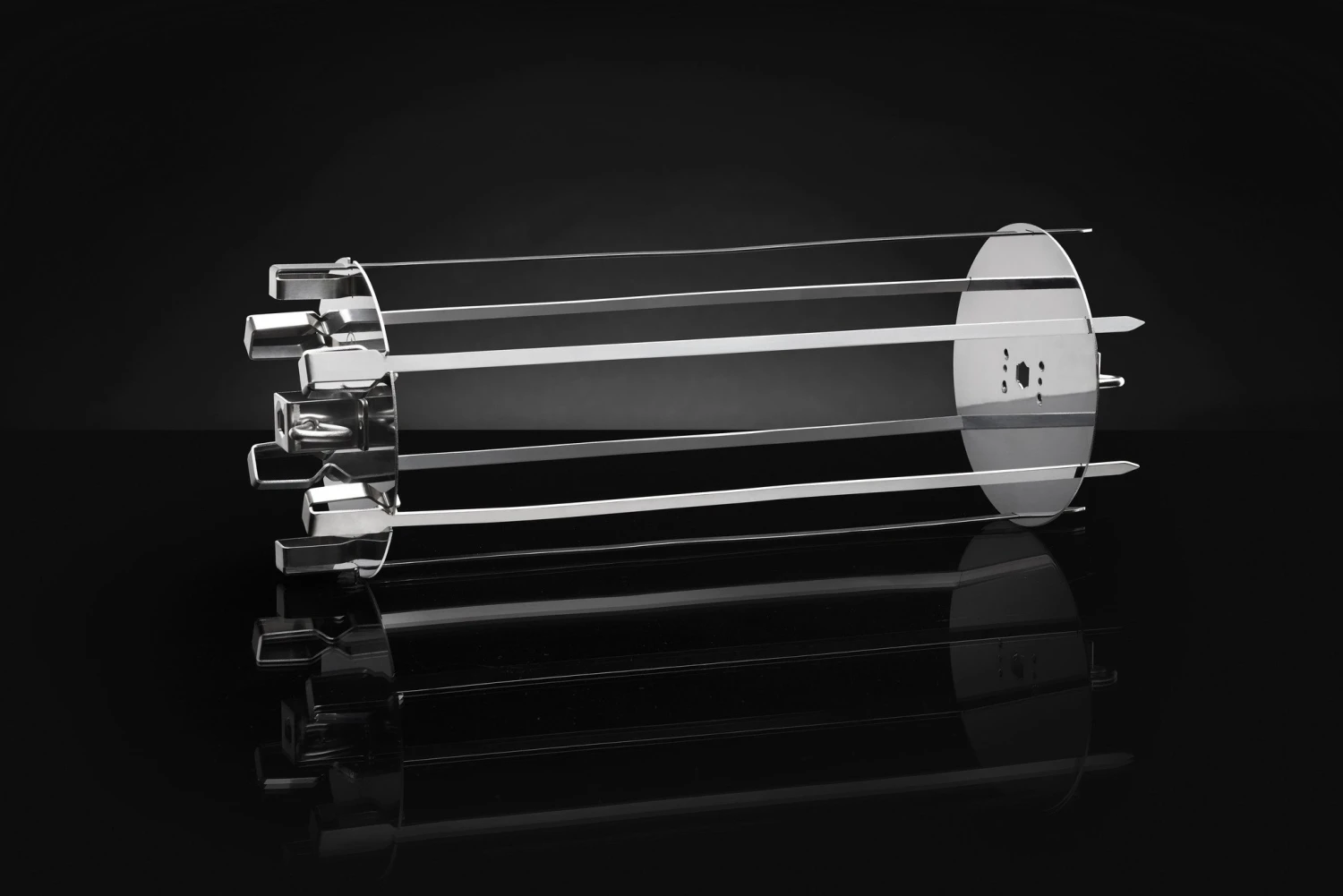 Deze set past op alle rotisseries en maakt het mogelijk veel om veel verschillende producten op je spit te bereiden, zoals vis of vleesspiesjes maar ook lekkere groente spiesen. Doordat de spit draait worden de ingrediënten gelijkmatig gegaard zonder dat je er een vinger naar uit hoeft te steken.