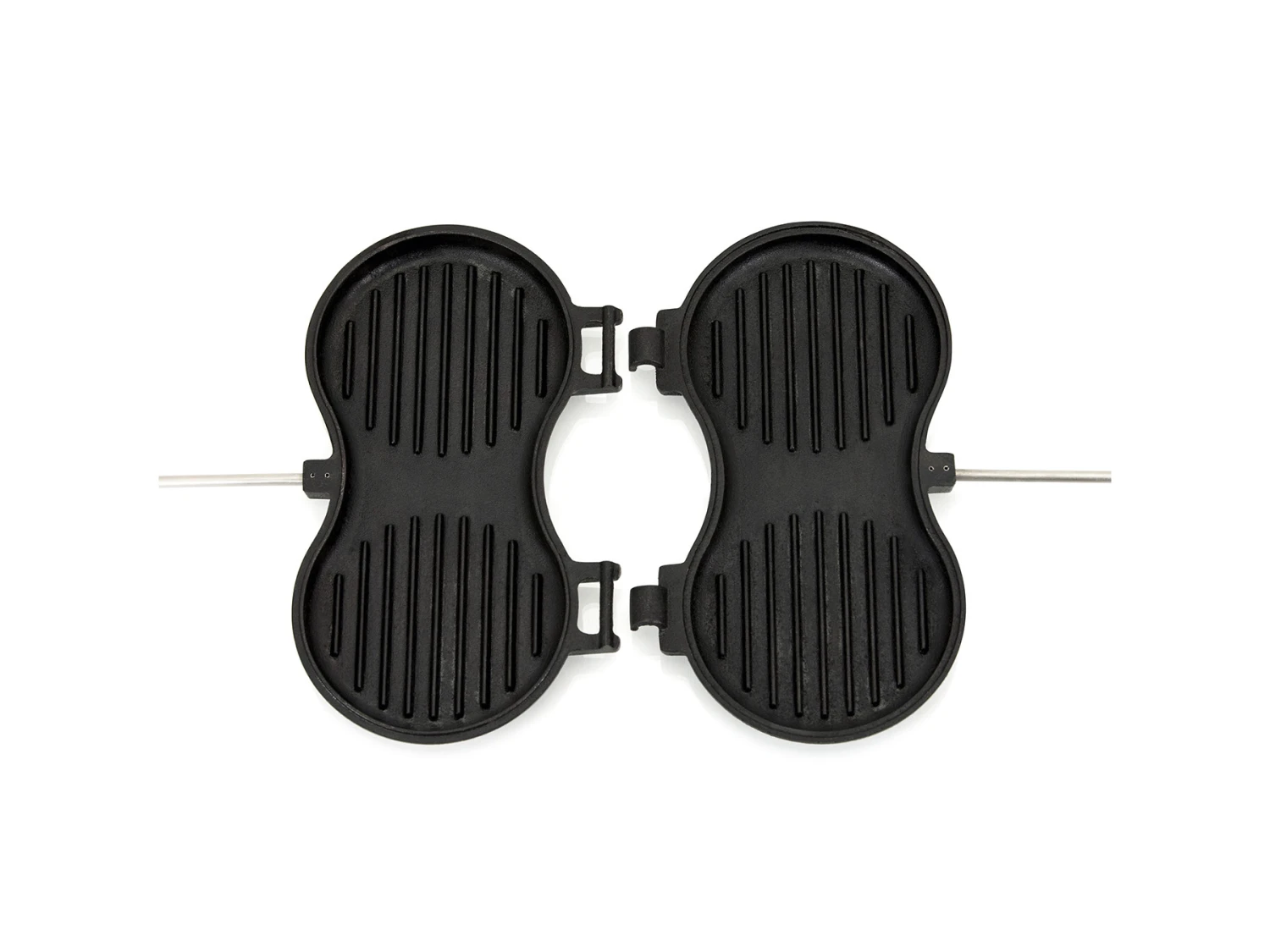 Met de Petromax Hamburgerijzer maak je perfecte hamburgers. Het geribbelde patroon binnenin het ijzer geeft het mooie en knapperige grill patroon aan de burger. In deze handige gietijzeren vorm kan je twee hamburgers tegelijk bereiden. Dankzij de platte, vlakke houten handgrepen en de vergrendelhaak kun je het hamburgerijzer veilig sluiten en vasthouden. En door de lengte van 70 cm kan je op een mooie afstand van het vuur de jouw hamburgers perfect en veilig bakken. De Petromax Hamburgerijzer is gemakkelijk schoon te maken omdat je beide kanten van elkaar kunt halen. Tevens maak je met een Petromax Schraper Geribbeld makkelijk weer schoon, ook tussen het grill patroon.