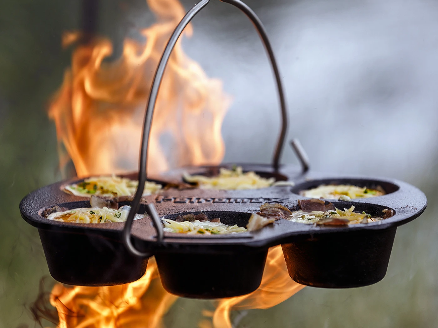 De Petromax Muffinvorm biedt ruimte voor maar liefst 6 heerlijke muffins. Een muffinpan is een bakvorm met meerdere holtes, ontworpen om muffins, cupcakes en andere kleine gebakjes te maken. De Gietijzeren vorm is voorzien van een handig hengsel met een kleine uitsparing om de vorm makkelijk en stabiel boven een vuur te hangen. Ook kan je hem natuurlijk rechtstreeks in het vuur plaatsen of op een andere hittebron gebruiken. Ook past de vorm in Petromax Dutch Ovens vanaf de FT6. Met de 6 muffin plekken kun je eindeloos combineren. Van naturel muffins tot hartige taartjes en gebakken eieren. Vrijwel alles wat je kan bedenken smaakt beter uit de muffinvorm boven een heet open vuur.