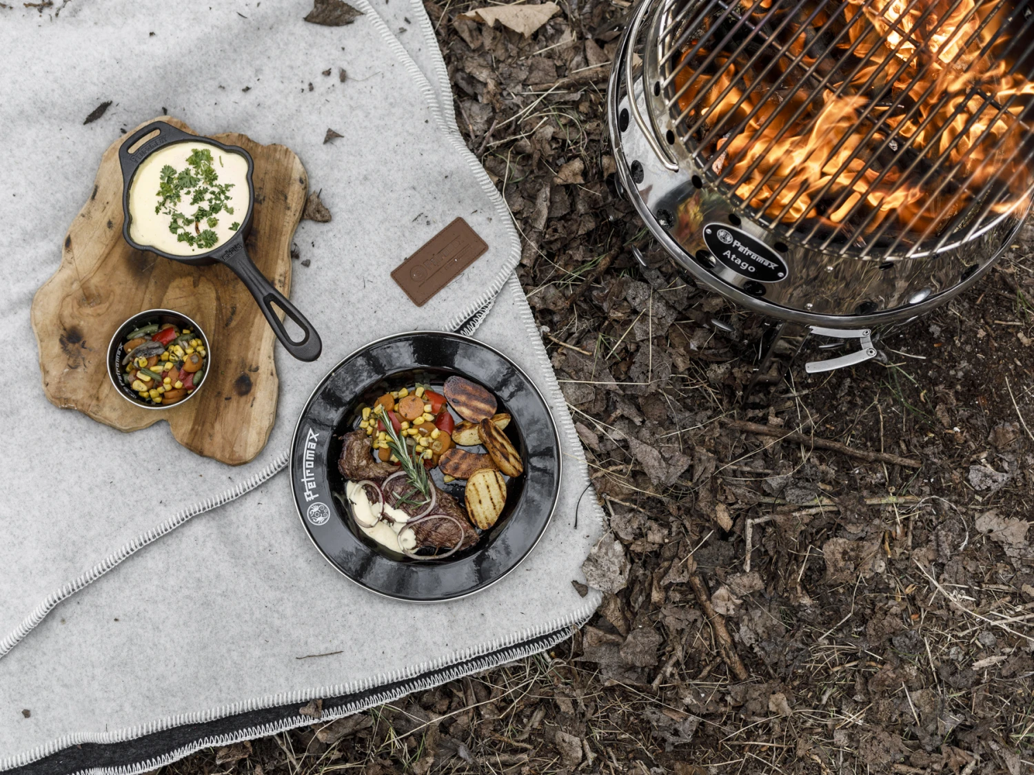 Een Skillet met vlakke bodem maak je gemakkelijk schoon met de Petromax schraper of Petromax scrub mat. Â