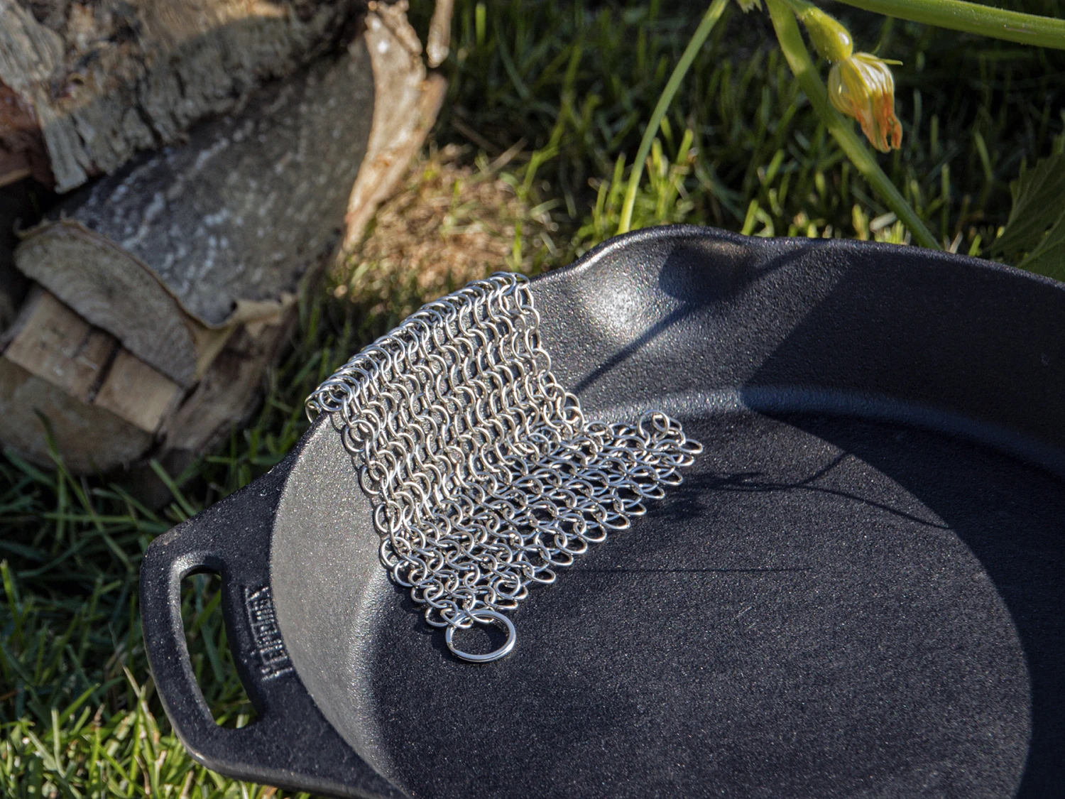 Een Petromax Scrubmatje is een schoonmaakaccessoire dat speciaal is ontworpen voor het reinigen van gietijzeren kookgerei, zoals Dutch ovens, skillets en grillpannen. De structuur van de in elkaar verstrengelde ringen verwijderen voorzichtig voedselresten zonder het oppervlak van het kookgerei te beschadigen. Verkrijgbaar in de volgende maten 12 cm of 20 cm scrubmat.Â