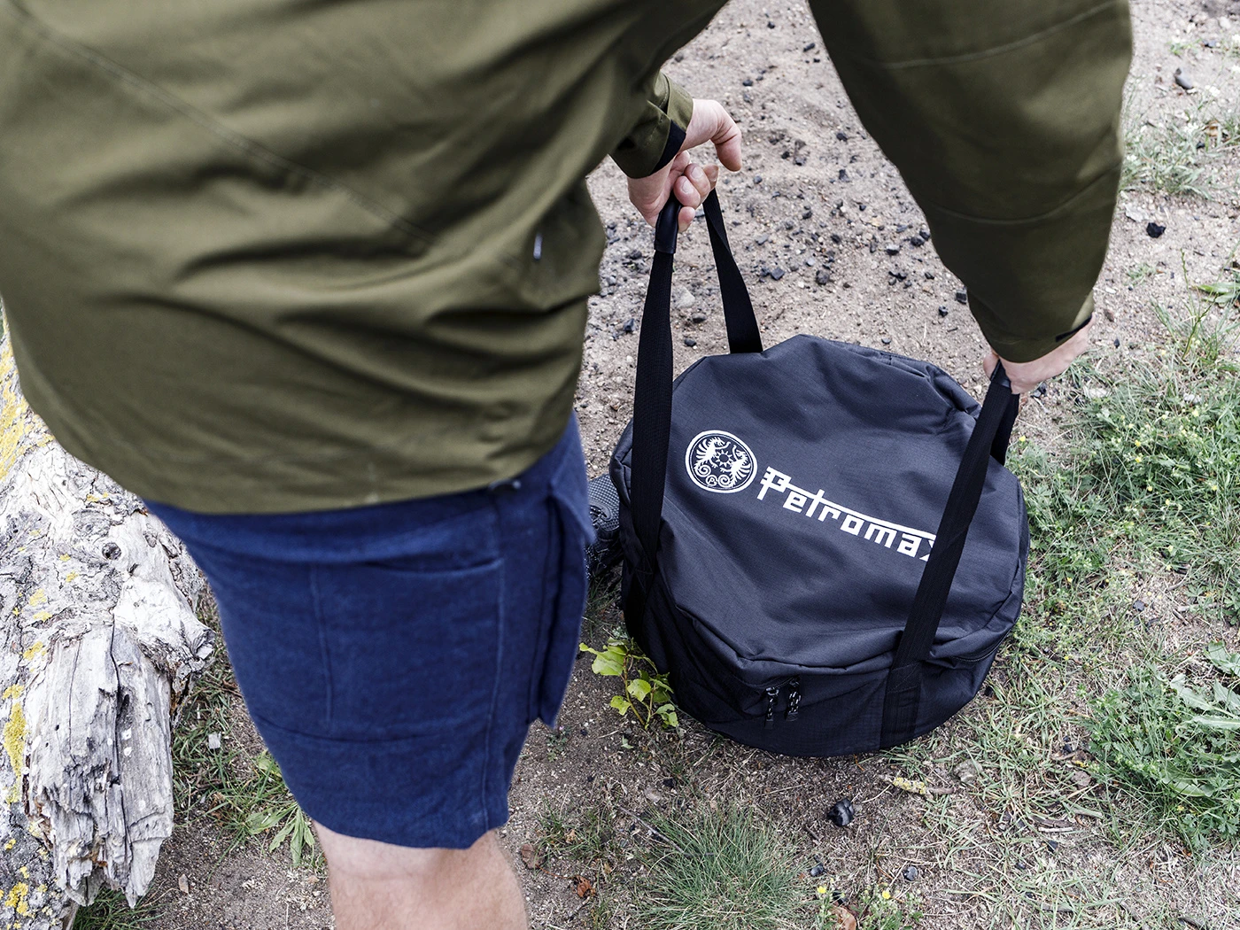 De Petromax transporttas is ontworpen om de Dutch Oven veilig en gemakkelijk te vervoeren naar campingtrips, outdoor cooking-evenementen of andere buitensportactiviteiten. De tas is gemaakt van duurzaam en stevig materiaal en is voorzien van handige handgrepen en een schouderriem voor comfortabel dragen. De tas is verschillende maten om de Dutch Ovens te kunnen dragen en biedt voldoende bescherming tegen stoten en krassen. Het is extreem scheurvast door het gebruikte ripstop nylon, zo is de hoogst mogelijke stabiliteit, scheurvastheid en een lange levensduur zijn zo gegarandeerd. De tas heeft in de deksel nog meer vakken voor accessoires, Petromax tondel, lucifers, lucifers, etc.Â