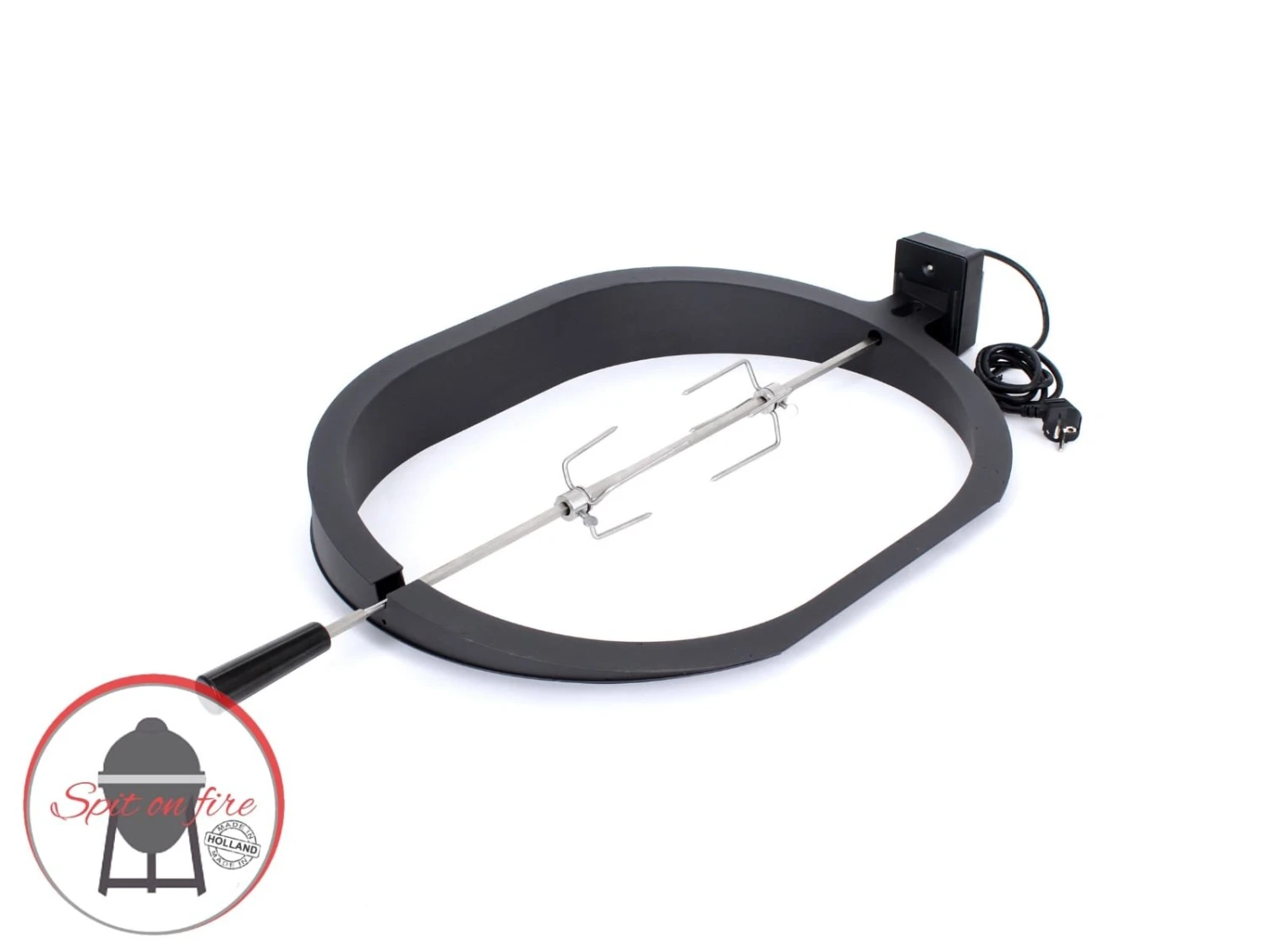 Spit on Fire is een universele rotisserie bestaande uit een RVS Spit en een 4 Watt krachtige elektrische motor. De Spit en de motor zijn geruisloos. En uitermate geschikt voor het grillen van kip, hoenderen, kalkoen of bijvoorbeeld Argentijnse Picanha steaks.