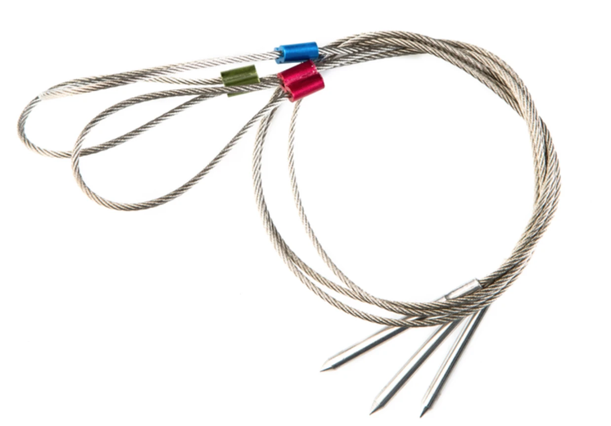 Bastard Flexibele Vleespennen Skewers zijn gemaakt van RVS en bestaan uit een roestvrijstalen pin en draad met een verzegelde lus. De set bestaat uit 3 flexibele vleespennen. De flexibele vleespennen kun jij in elke gewenste vorm op je rooster leggen, ideaal op een rond rooster. Doordat de vleespen een punt heeft, kun jij eenvoudig verschillende vlees/ vissoorten en groente aan de vleespen rijgen.Â